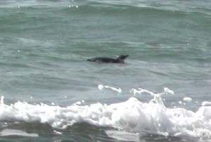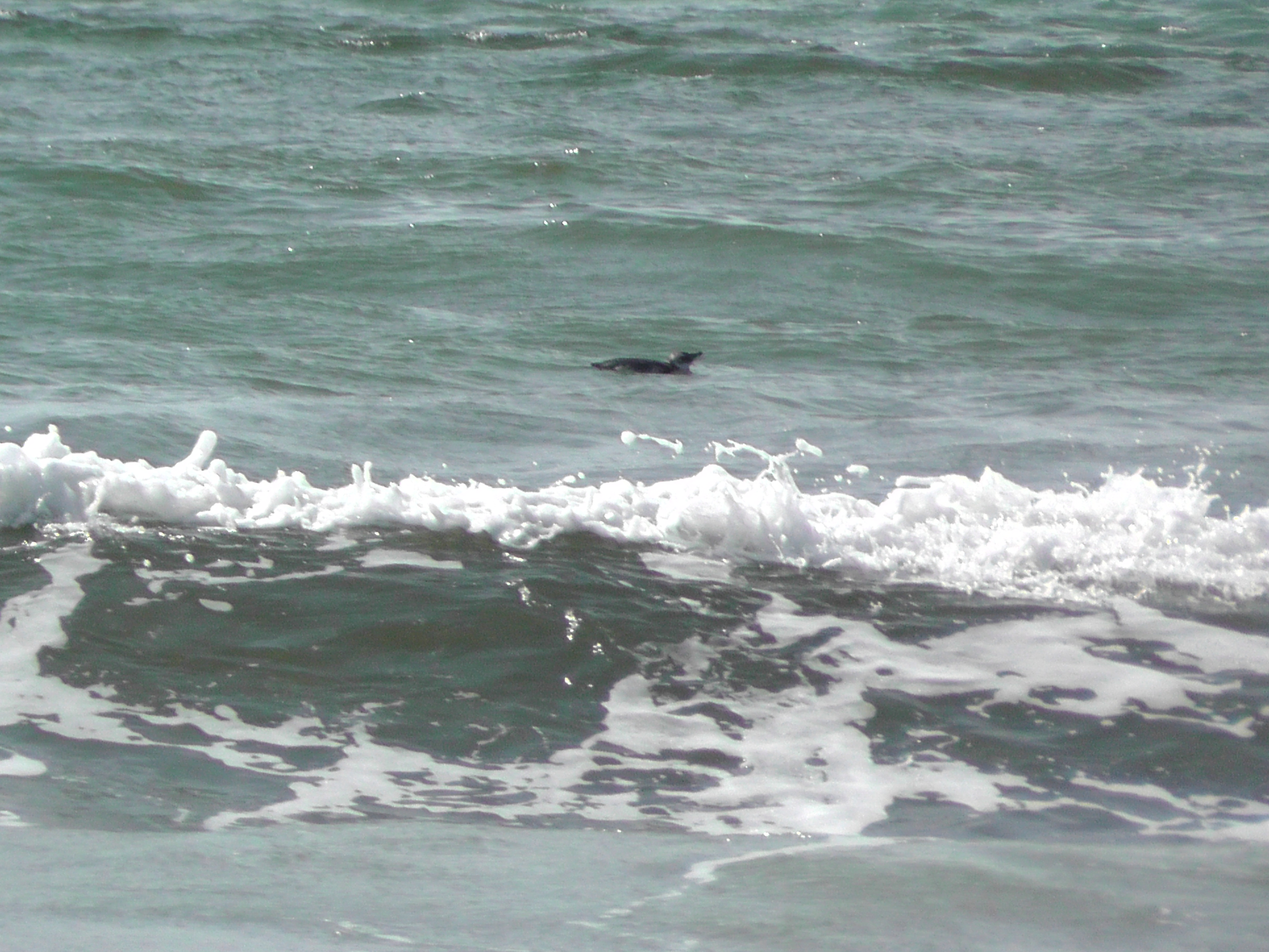 northern end of the beach (Mole means soft in Portuguese), marveling at the dudes in wetsuits who chose to run through this pudding-like medium. They streamed by me, in an impatient swarm towards the paddle-in spot. I was watching them very carefully at this point, because it seemed that the ONLY place from which people were paddling in today was off the rocky headland at the North. They ran across a big jungle-gym style pile of rocks, out to a point where, as far as I could tell, waves were breaking rather roughly. Then they waited for just the right moment, and took a leap off the rocks into the water onto their surfboards, steering past the lone boulder ahead before the next big wave broke.
