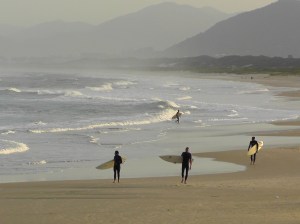 One of the Floripa’s claims to fame is that the waves are always breaking nicely SOMEWHERE on the island. It’s got 42 beaches with different exposures, land features, and bathymetry (that means underwater topography), which make for different wave outcomes depending on the swell and wind direction. The locals have a great sense of this. I’ve heard tidbits: Joaqina works with most everything and that’s where the waves are biggest. Barra da Lagoa has small but perfectly shaped waves and is the place to go when the southern wind messes up the swell elsewhere. Praia Mole works really nicely with a Northwestern wind. And so on…