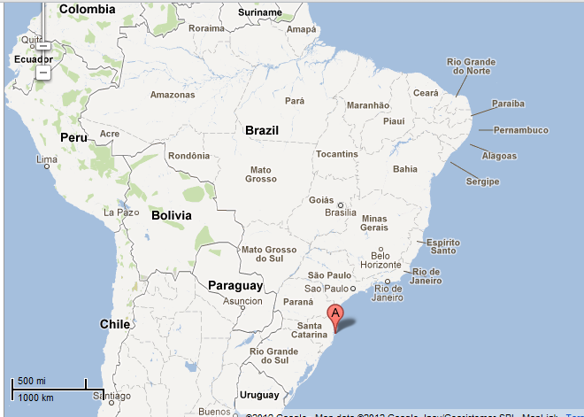 brazil in mapquest Published August 18, 2012 at 660 × 471 in Where am I and what am I up to The little pink pointer marks the island of Florianopolis, where I am staying for now.