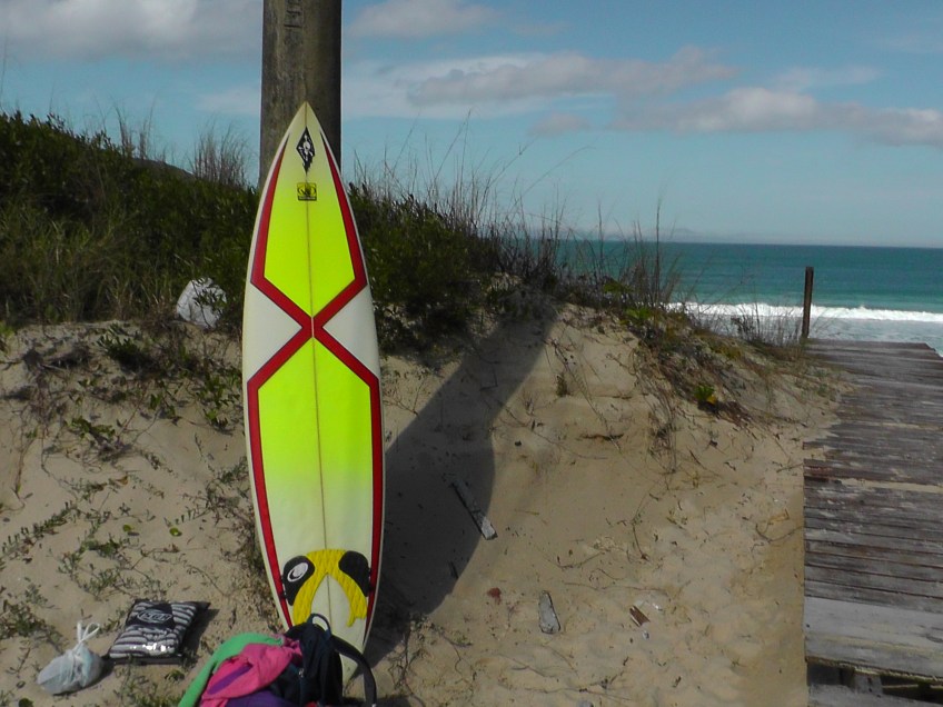 S1010026 Published August 18, 2012 at 2848 × 2136 in Buying my Brazilian Surfboard Solo shot of my new board, with Acores beach in the background.
