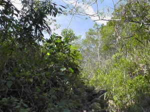 houses blanketed in flowering vines on which butterflies and chirping birds lazed away the afternoon. But when I reached the forest, the path started to look a bit sketchy, hardly wide enough for a person to squeeze with a little stream of water running down the middle. The path/stream was slippery, and carried the risk of me faceplanting, which normally wouldnt be such a big deal, but face planting with a surfboard entails some sort of damage for the board, which after all is just made of foam, covered in a thin layer of fiberglass. But the adventure seemed worth the risk of a ding or two to my
