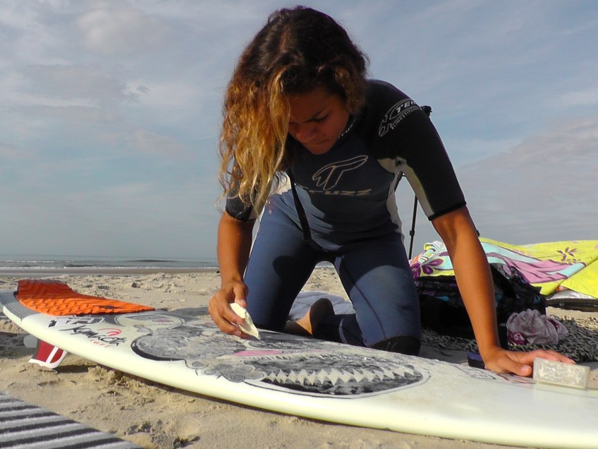 S1040013 Published August 21, 2012 at 2848 × 2136 in Surfer Girl Festival Aloha gets her board ready for her first heat