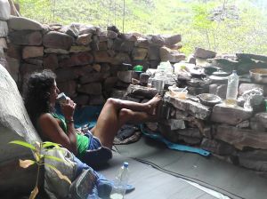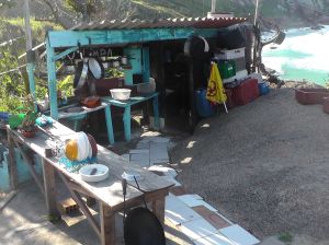 friend proudly showed me his well-stocked kitchen and his “dining room table” which was a gorgeous slab of rock overlooking the ocean. He invited me to come back for lunch on another day and then showed me the safest path for reaching the headland.