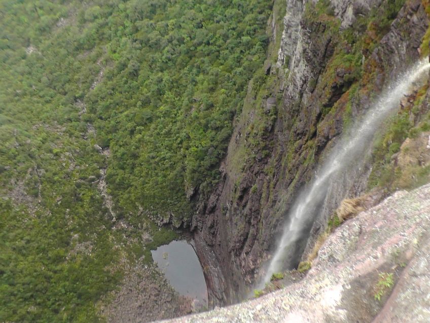 8looking down at fumaca Published November 25, 2012 at 2848 × 2136 in Climbing waterfalls in Chapada Diamantina! This is Fumaca Falls, a really really really tall waterfall!! 2nd tallest in Brazil. There’s a little overhanging ledge where you can lie on your tummy and look down – a mind-altering experience…