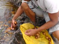 18Marquinhos Potatos Published November 25, 2012 at 2848 × 2136 in A village in the sky! While crossing the table top of the mountain, Marquinhos spotted these “potatoes of the mountain” growing wild in a stream. They are a bit like jicama, and made for a tasty and crunchy salad with our dinner.