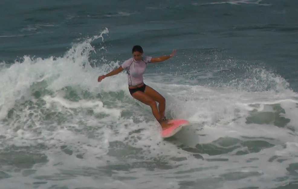 on a windy hillside overlooking a gorgeous beach and surfing 4 hours a day on nice clean waves. The water was filled with mohawked, loudmouthed, 10 to 14 year old local boys, who could surf like nobody’s business and had no trouble dominating the whole break. I had to fight for every wave, but I loved it, and it made me a better surfer. I’ve never surfed as much as I did there, and I could feel myself improving everyday, just from having so much time standing up on waves. Other surfer grrrls were hard to find, but I