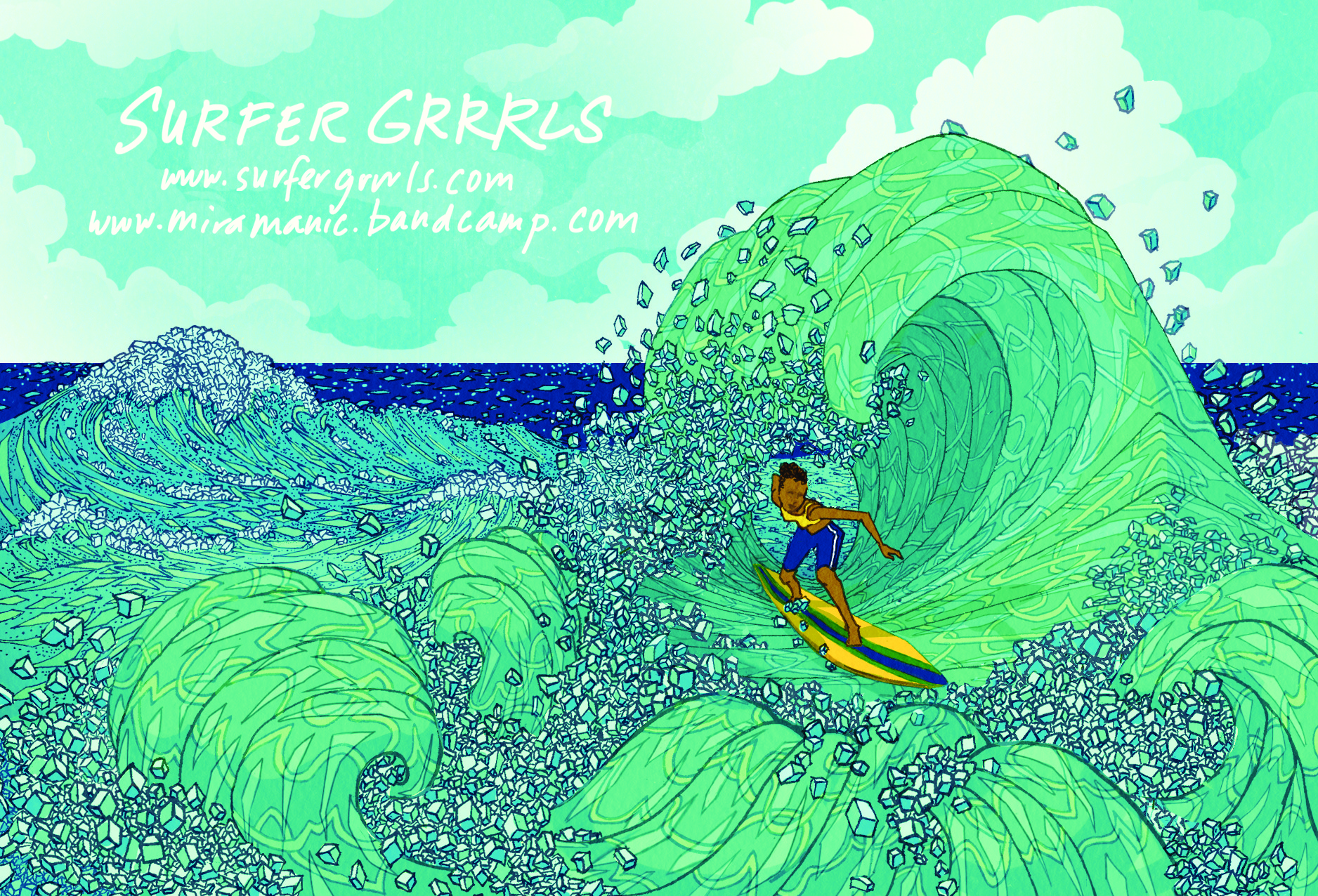 SurferGrrrlsPSPrintfinalCYBconvertedfromPDF Published October 31, 2014 at 1876 × 1276 in Surfer Grrrls on Bandcamp, and a dreamy new postcard!